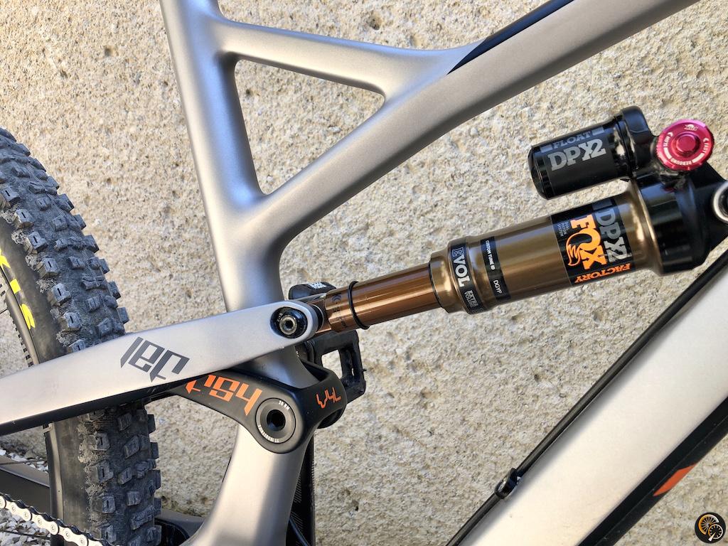 Ces informations nous permettent de savoir que cette cinématique progressive autorise une bonne sensibilité en début de course et un comportement plus ferme en fin de course. On y reviendra quand on parlera de l’amortisseur en lui-même.