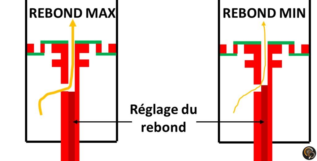 Ce réglage pourra également avoir un impacter léger sur la compression puisque comme on l’a vu précédemment, lors de la compression, l’huile passe à travers le clapet de retour de compression situé sur le piston, mais aussi par le pointeau de rebond basse vitesse.