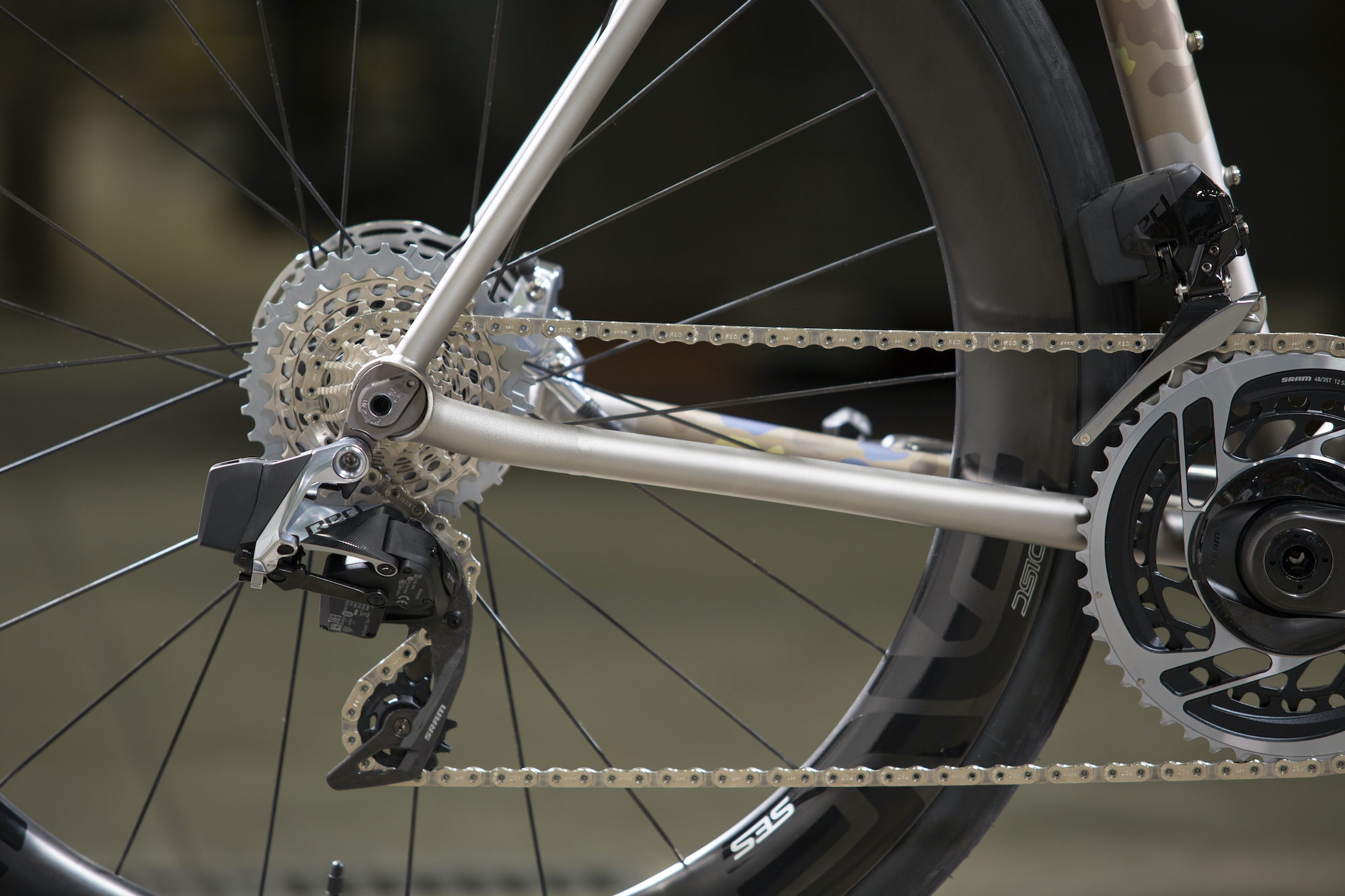Il laisse habituellement la finition brute du titane, ce qui donne un look particulier aux vélos, mais propose aussi de sublimes anodisations.
